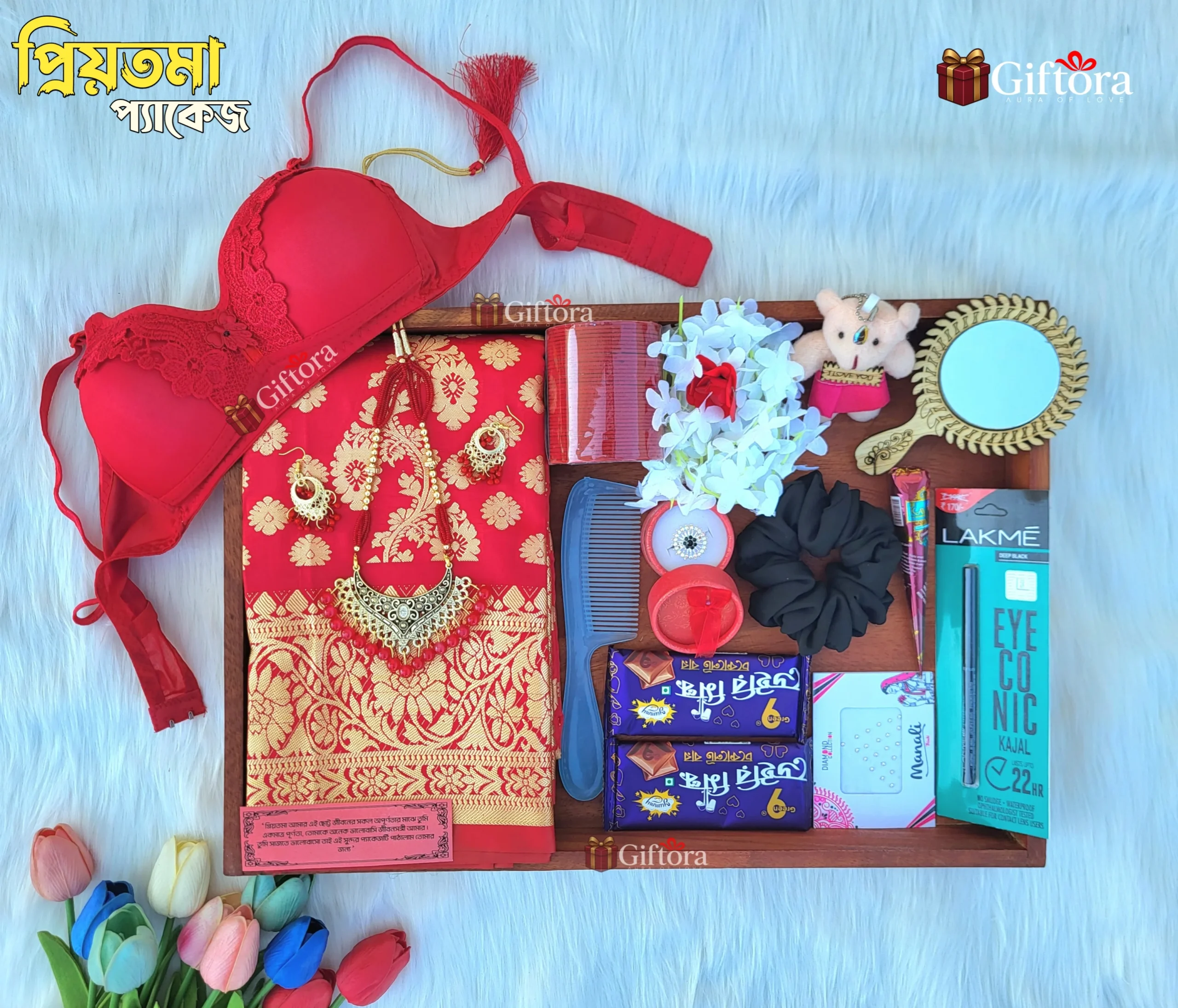 এই প্রিমিয়াম গিফট শাড়ি বক্স–এ সবকিছু একসাথে, যা প্রেম এবং যত্নের এক অনন্য সংমিশ্রণ।