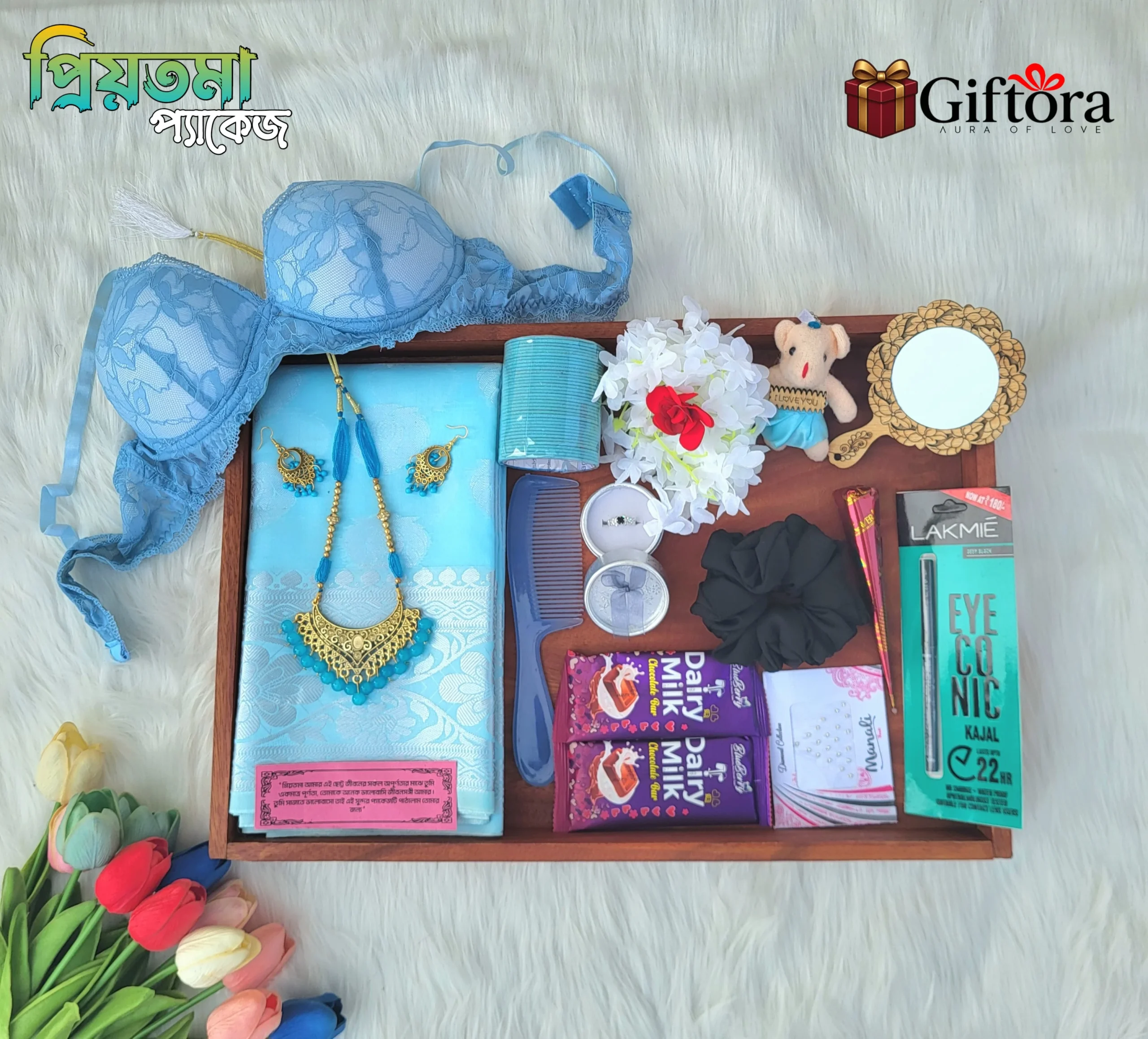 এই প্রিমিয়াম গিফট শাড়ি বক্স–এ সবকিছু একসাথে, যা প্রেম এবং যত্নের এক অনন্য সংমিশ্রণ।